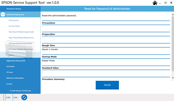- Start the printer in repair mode. Turn the power on while touching [Screen Center], and keep pressing until the mode select screen is displayed. Touch the center of the panel to start repair mode.