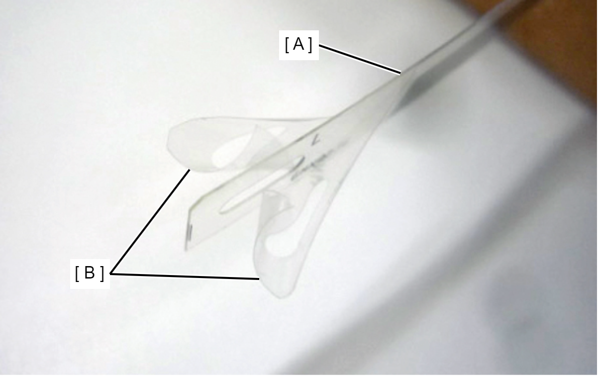 - If protection films (B) are applied on both sides of the new CR Scale (A), peel them off before installation.