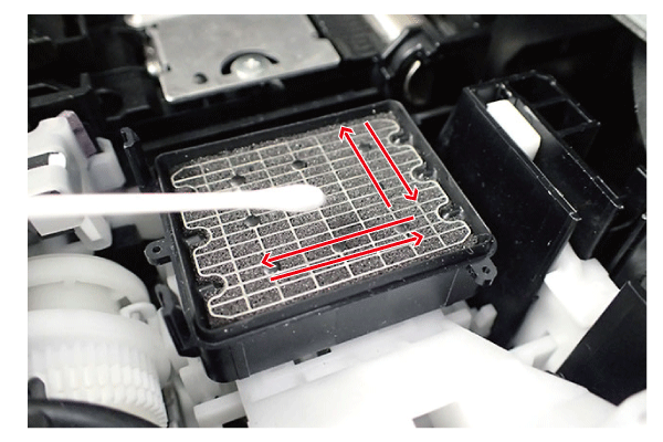 - If the Polyester swab is moved in a direction other than that indicated by the arrows in the figure above, the Wiper may shift. Therefore, always be sure to move it in the direction of the arrows.