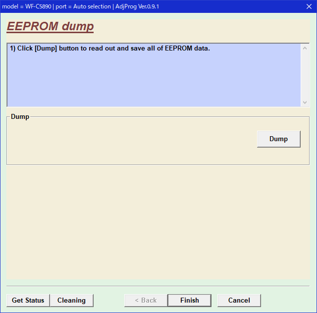 Press the Dump button to read all EEPROM data and save it to file in .eep format.