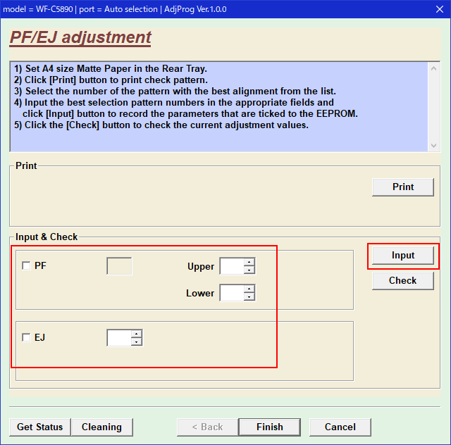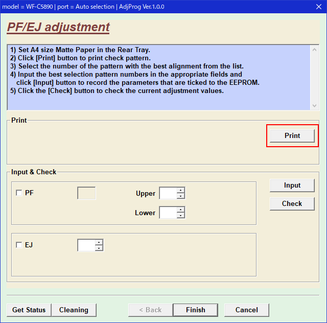 Start the Adjustment Program, and select “PF/EJ adjustment”.