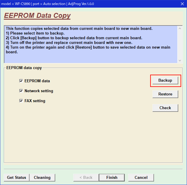 - Select the “EEPROM Data Copy” from menu of adjustment program.