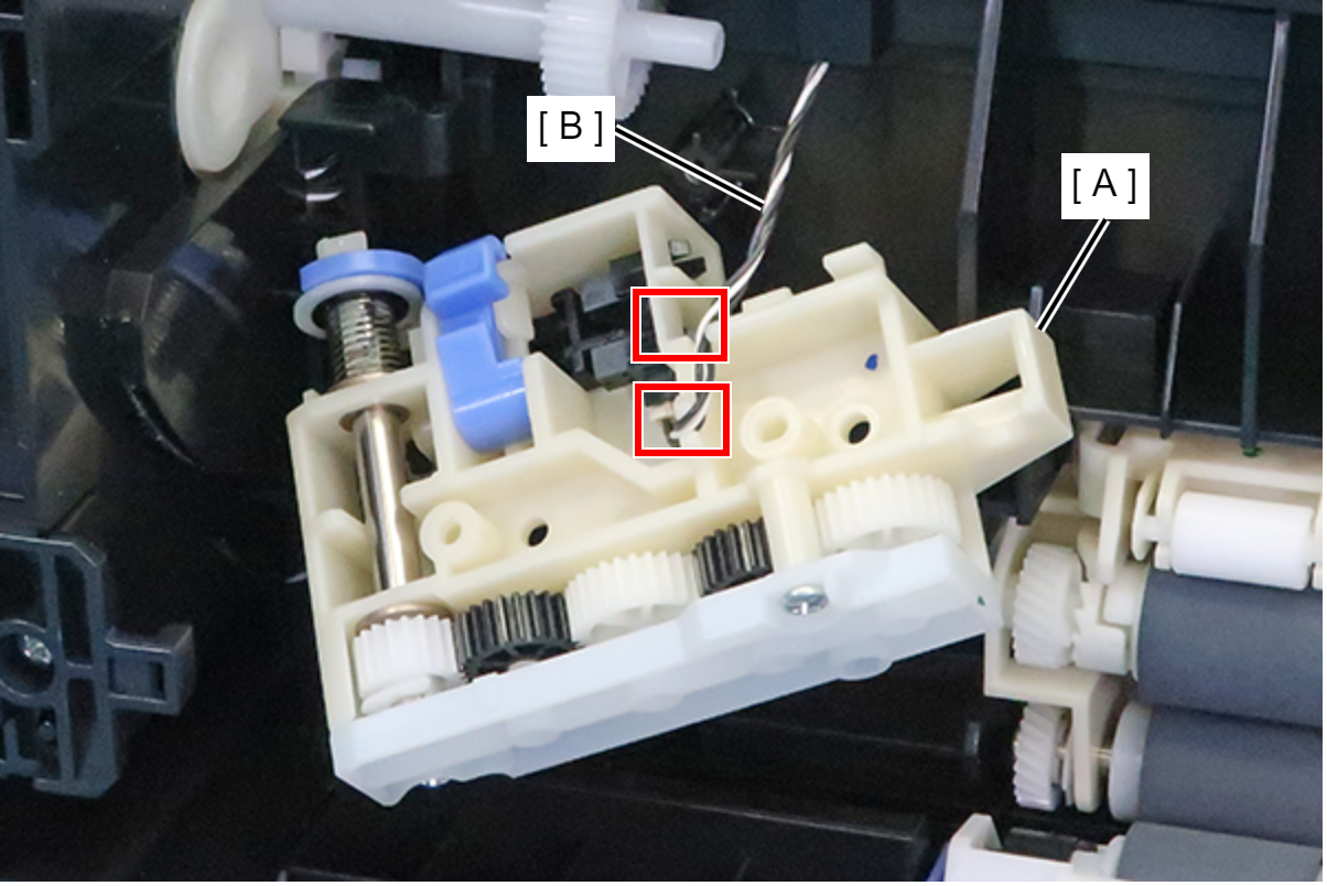 When installing the ASF Housing Assy (A), pass the cable (B) through the two slits.