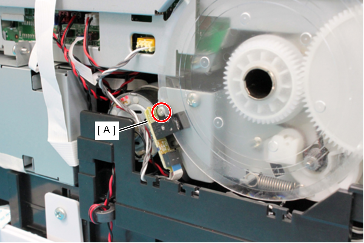 - Open the ADF/SCN Unit and remove the screw securing the Housing Left (A).