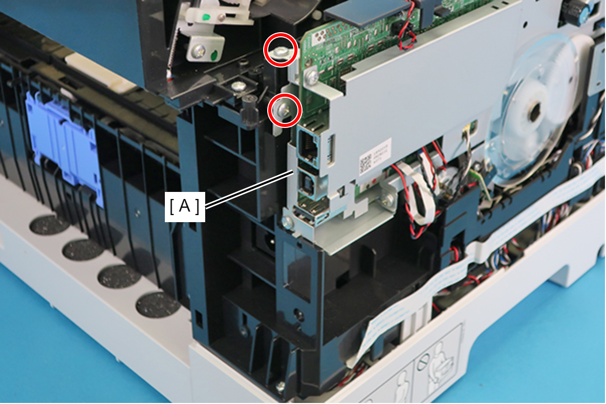 - Remove the two screws, and release the ground wire (A) from the slit to remove it.
