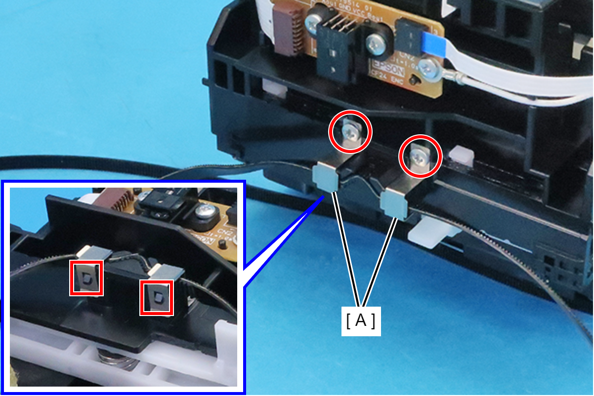 - Remove the two screws, and then remove the Head Upper Cover (A).