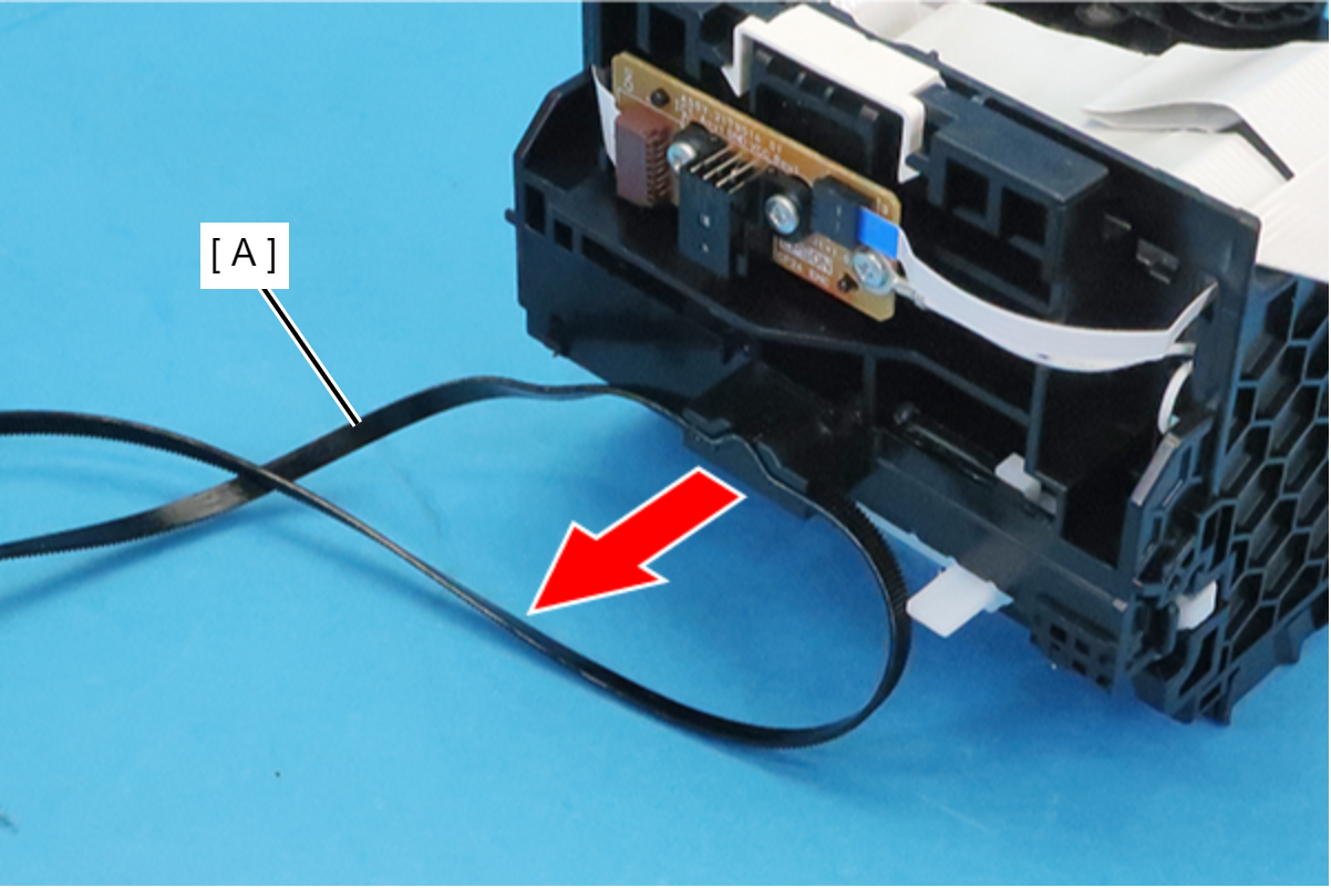 Pull and remove the CR Timing Belt (A) in the direction of the arrow.