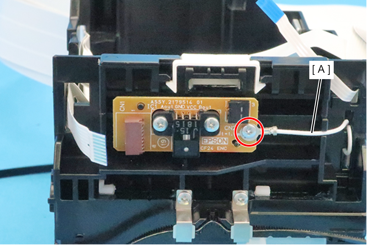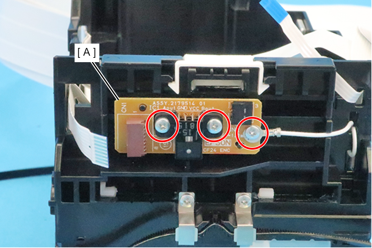 - Remove the three screws, and then remove the CR Encoder (A).