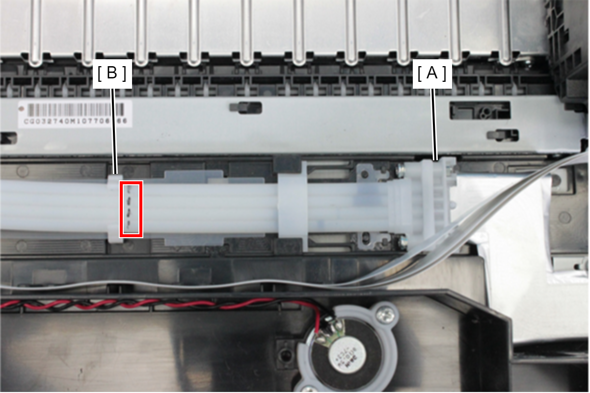 Remove the Ink Supply Tube (B) from the Joint (A), and remove the Ink Supply Tube (B).