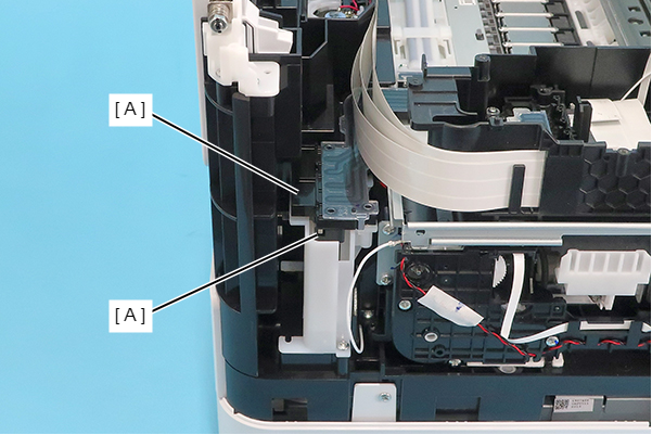 - Remove the two screws, and then remove the Head Upper Cover (A).