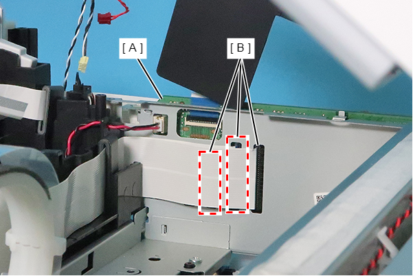 - Disconnect the two cables (B) from the connectors (CN74, CN80) of the Main Board (A).