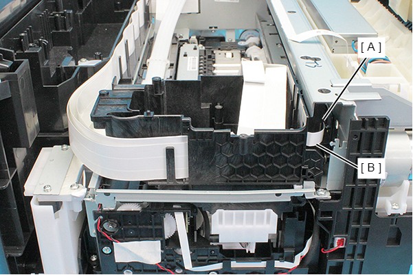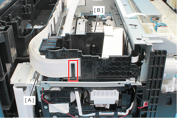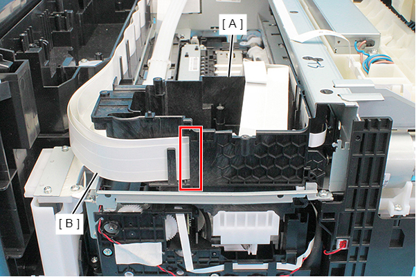 - Remove the Head FFC Assy (B) from the connector of the CR Encoder (A).