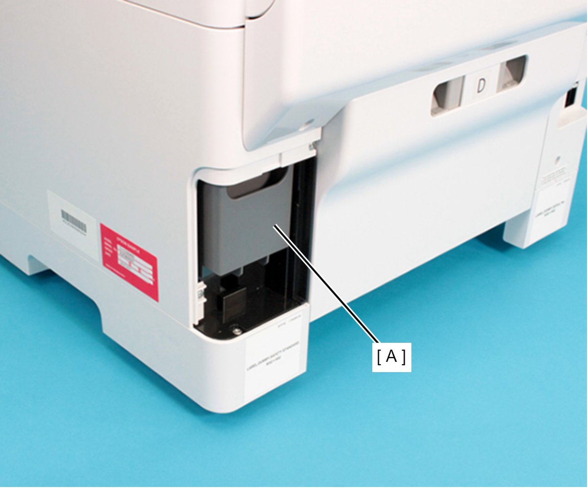 - Disengage the hook, and remove the Maintenance Box Cover (A).