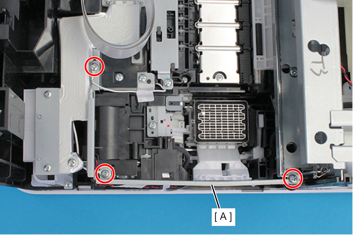 - Remove the three screws and remove the Upper Cap Frame (A).