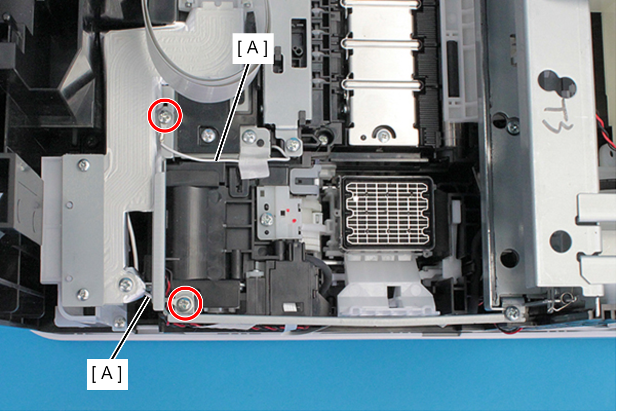 Remove the screws that secure the Wasted Ink Duct Holder (A).