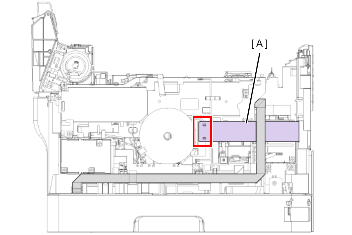 - Open the ADF/SCN Unit and remove the screw securing the Housing Left (A).
