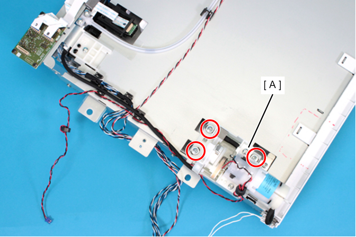 - Remove the two screws, and release the ground wire (A) from the slit to remove it.