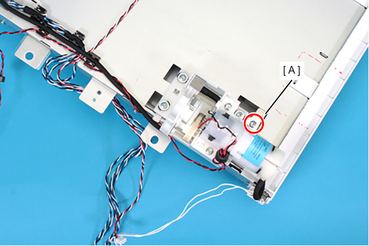 Check that the tube rib (A) and the joint section are perpendicular and secure as in the figure below.- Remove the screw and then remove the Front Cover Open Sensor (A).