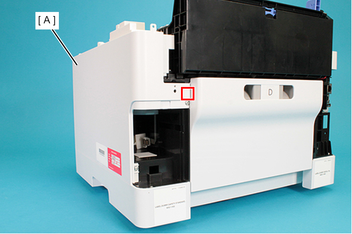 - Open the ASF Cover (A) and remove the two screws securing the Rear Housing Assy (B).