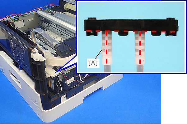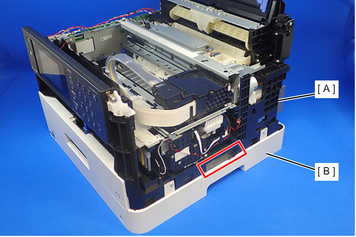 When the Joint (B) has been installed, check that there is no gap between the Ink Supply Tube (A) and the Joint (B).