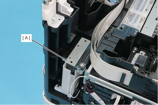 - Remove the two screws, and release the ground wire (A) from the slit to remove it.