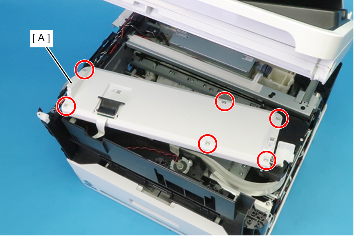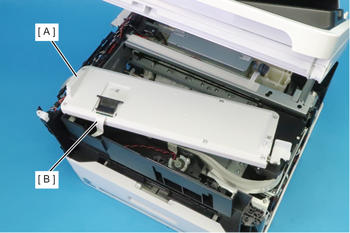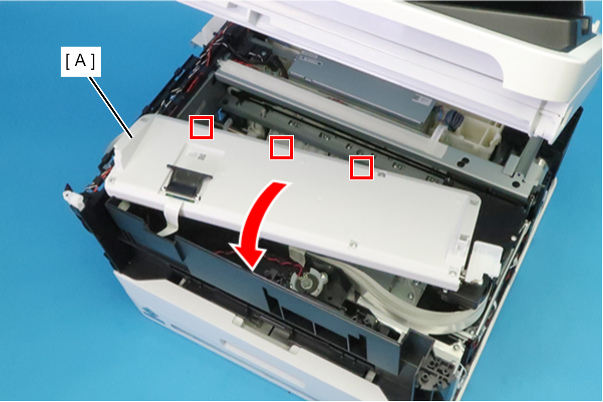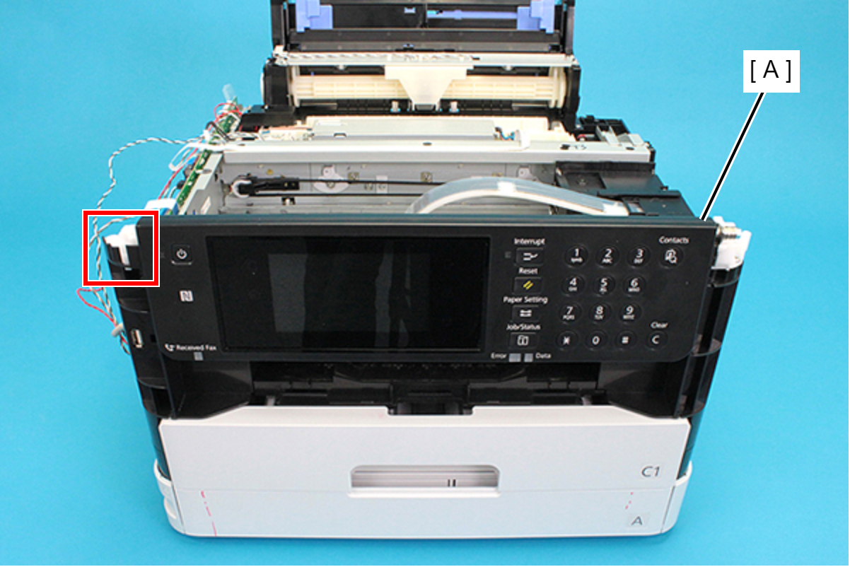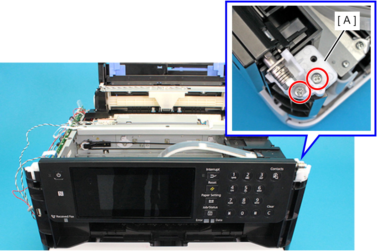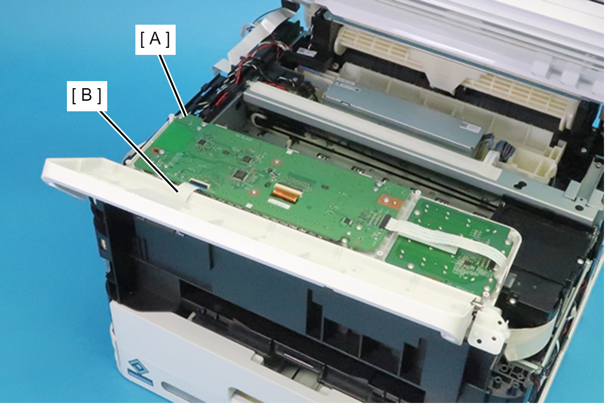Turn the Panel Assy (A) over and place it on top of the printer.