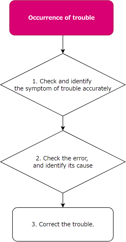 - If Step 3 is directly performed by skipping Step 1, and 2, the real cause of the trouble may be hidden, which results in recurrence of the trouble or cause of another problem.