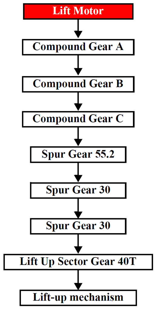 The Lift Motor's drive force is transmitted via the Lift-up Gear Group to this mechanism and rotates the Lift-up shaft.