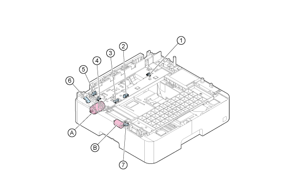 B | Lift Motor | Used to raise the Paper Cassette Hopper. | DC motor (42VDC±5%) |