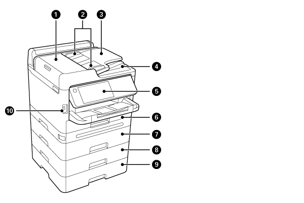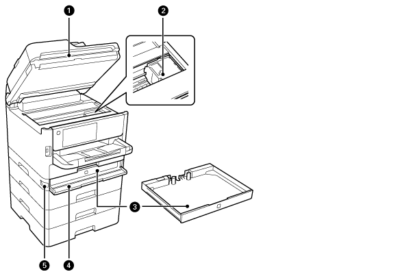 1 | Paper tray cover | Prevents foreign substance from entering the printer. Usually keep this cover closed. |