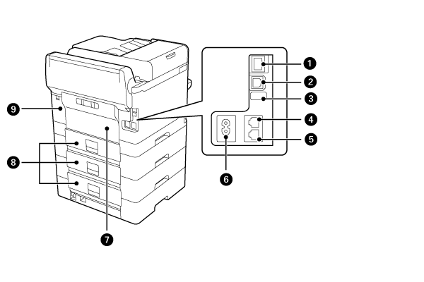 6 | Paper cassette 1 or Paper cassette (C1) | Loads paper. |