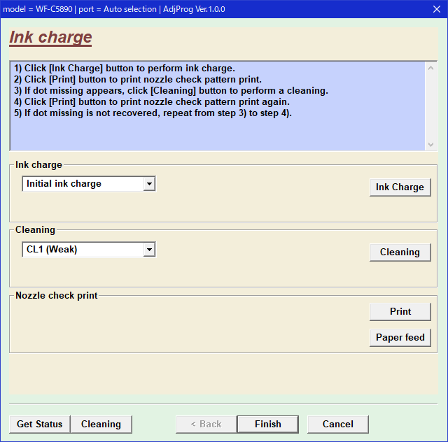 - Select “CL3 (Strong)”,and press the Cleaning button.