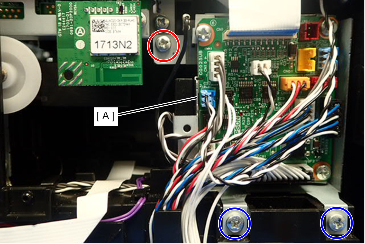 - Open the ADF/SCN Unit and remove the screw securing the Housing Right (A).
